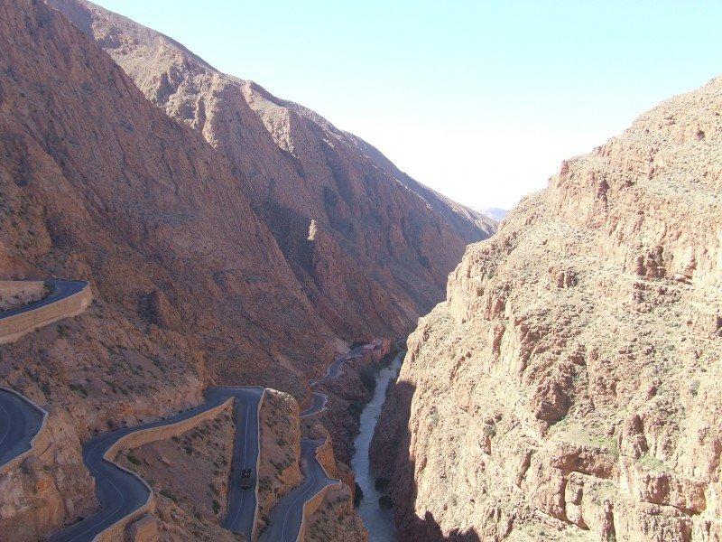 Madrugaremos para ver el amanecer desde lo alto de una gran duna. Desayuno y después regresaremos con los dromedarios al Hotel donde podremos darnos una reconfortante ducha. Salimos hacia Rissani y Erfoud para visitar la fábrica de mármol fosilizado antes de continuar hacia los palmerales de Touroug y Tinjdad. Llegaremos a uno de los puntos fuertes del Sur: Las Gargantas del Todra. El cauce del Río Todra ha formado un desfiladero de paredes verticales de enormes proporciones y de gran belleza; es el paraíso de los escaladores y un lugar único. Almuerzo en el sitio y una caminata de media hora para ver con tranquilidad las Gargantas, Por la tarde continuamos hacia el Vallé del Dades pasando por Boumalne. Cena y alojamiento en las Gargantas del Dades según categoría de hotel seleccionada.