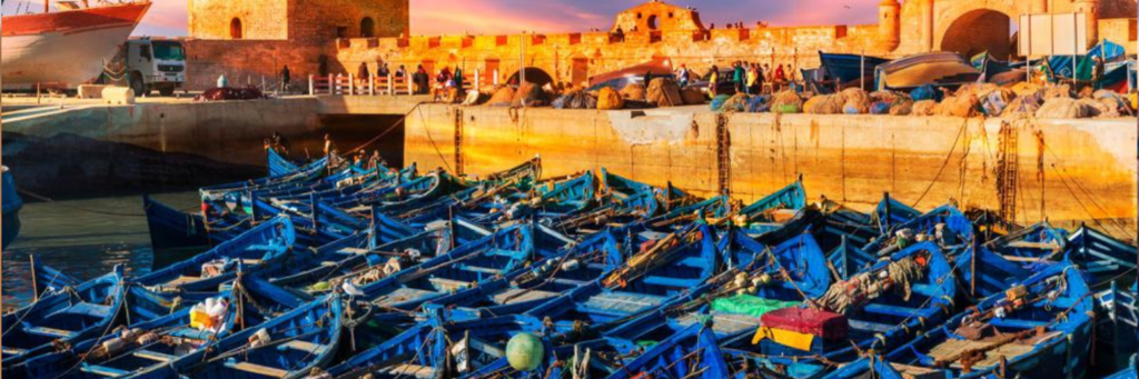 Essaouira o la perla del Atlántico, esta ciudad patrimonio de la humanidad, mantiene el encanto y la autenticidad de una tierra perdida en el tiempo. Essaouira se ha convertido en una etapa imprescindible en el viaje a Marruecos. Al explorador aventuroso le va a fascinar la amabilidad hospitalaria de la gente de esta ciudad, que no es de extrañarse ya que viven desde hace siglos en la encrucijada de culturas, civilizaciones y religiones. La ciudad está muy conocida con sus fábricas de la madera de Tuya, las cooperativas femeninas del aceite de Argan y de las alfombras. En nuestra excursión a Essaouira proponemos una parada en una cooperativa femenina para ver la demostración de las mujeres locales preparándo el aceite del Argan. En la llegada a la ciudad, puede usted hacer por libre una vuelta en la Medina de Essaouira, visitar el puerto, y después disfrutar de un almuerzo de pescado fresco en la plancha en los restaurantes locales del puerto. Si lo desea podemos contratar un guía local que le realizará un tour por la Ciudad. La excursión desde Marrakech a Essaouira se empieza lo más temprano posible (es recomendable) para aprovechar bien del día.